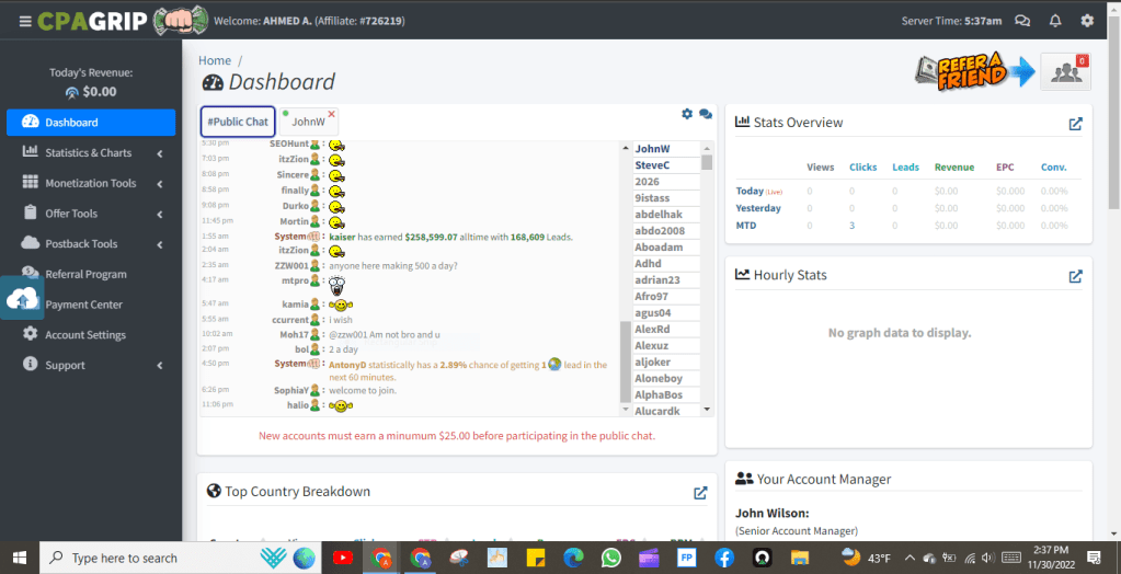 let’s start with the dashboard where you can find a chat section, workers can show their earnings and share positive staff about the platform